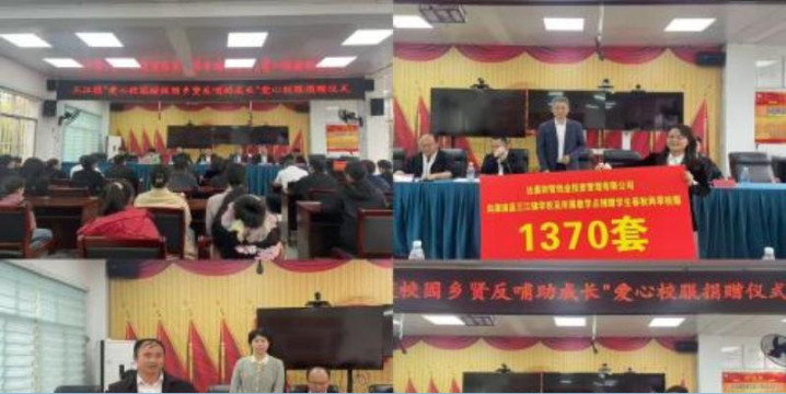 一份爱心,温暖一座小镇;一套校服,点亮一份希望。近日,一场充满温情与关爱的“爱心校服暖校园,乡贤反哺助成长”爱心校服捐赠仪式在三江镇举行。达晨财智创业投资管理有限公司带着对家乡教育的深情厚谊,为三江镇三所学校捐赠春秋季校服共计2990套,其中三江镇学校获赠1370套,三江镇江东学校获赠1098套,善溪学校获赠522套。统一的校服不仅是一份物质上的支持,更是一份精神上的鼓舞,让孩子们感受到来自社会的关爱与期望。
